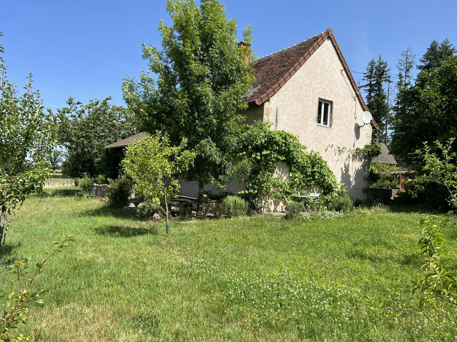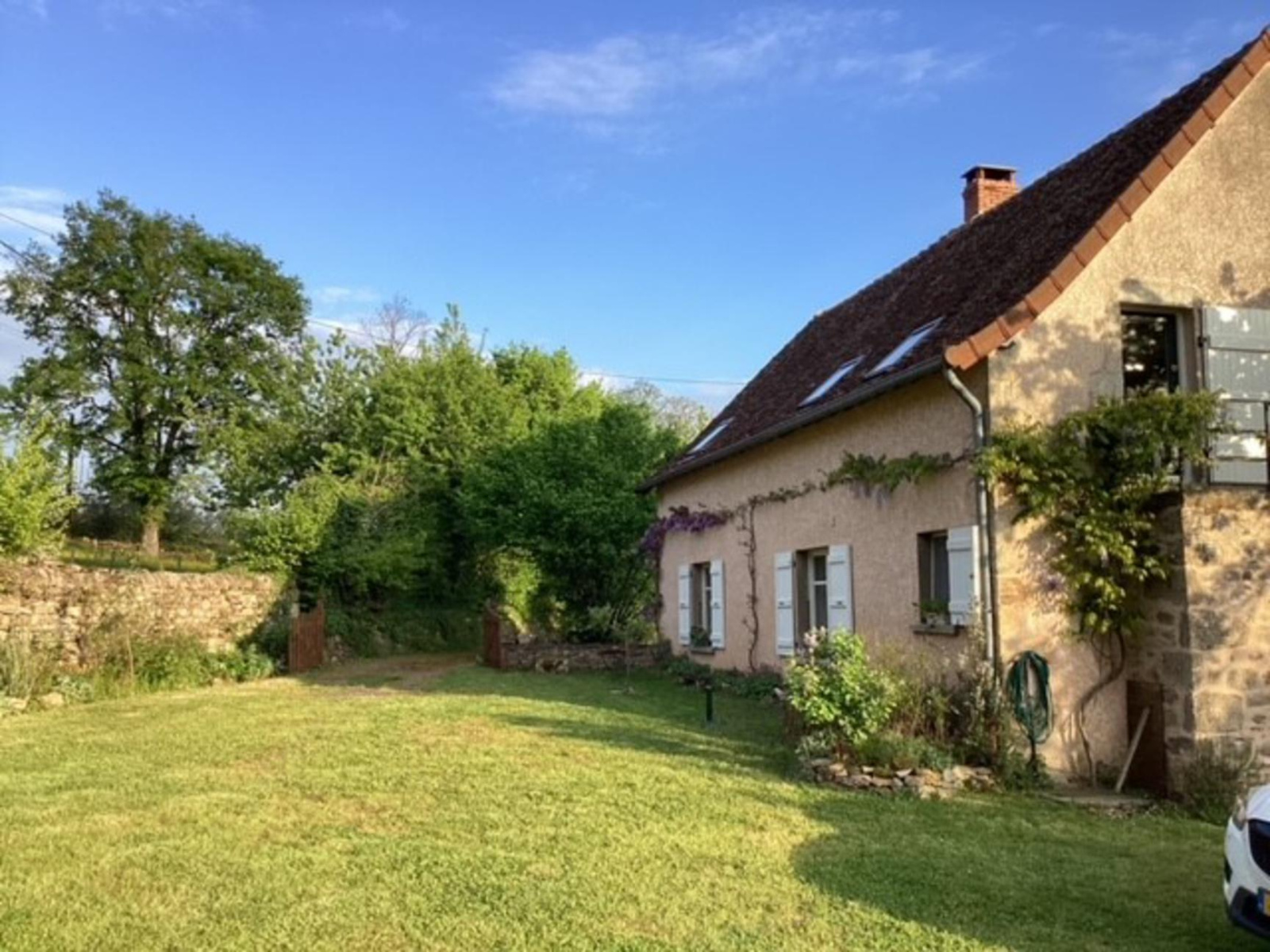 10 kms Charolles (71), dans un hameau calme avec une très belle vue, maison en pierres d'environ 104 m² habitables sur un terrain arboré de 1408 m². L'habitation en partie élevée sur cave comprend au rez de chaussée séjour avec cheminée et poêle à bois, cuisine intégrée et équipée, salle d'eau avec wc, couloir, 2 chambres. A l'étage avec un accès extérieur un appartement indépendant comprenant kitchenette, salon, une chambre, salle de bains, wc, et une pièce sur tomettes en cours de rénovation pour 31 m² habitables supplémentaires qui pourrait accueillir un escalier intérieur pour faire communiquer les logements. Dépendances séparées mitoyennes avec grange, écurie, fenil et abris. Beaucoup de cachet pour cet ensemble immobilier. Idéal en résidence secondaire. Très bel emplacement. Vendue meublée et équipée.