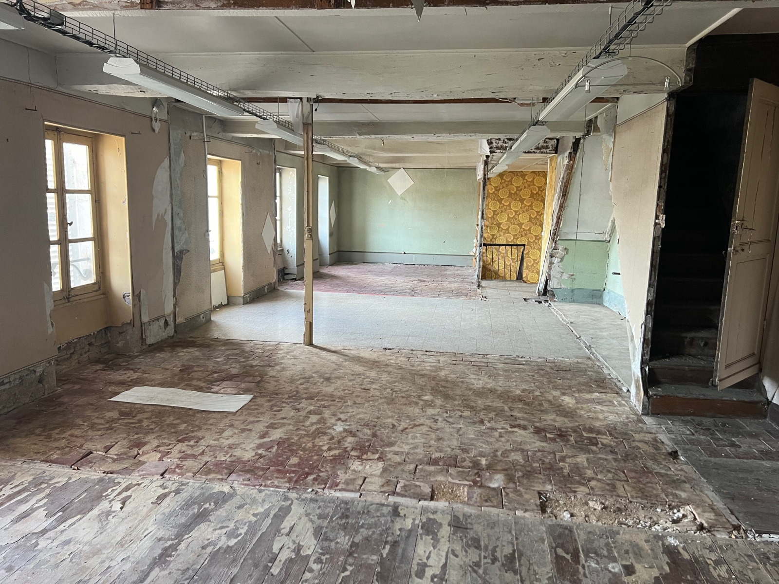 Situé sur la place du village, immeuble de 168 m² en partie élevé sur cave avec un puits. Le rez de chaussée comporte un plateau lumineux à aménager de 84 m², au 1er étage un autre plateau de 84 m² à aménager. Au 2ème étage greniers. Une bande de terrain devant avec une vue dégagée sur la place du village nouvellement refaite. Peut convenir pour des projets commerciaux, d'habitation, d' investissement.....