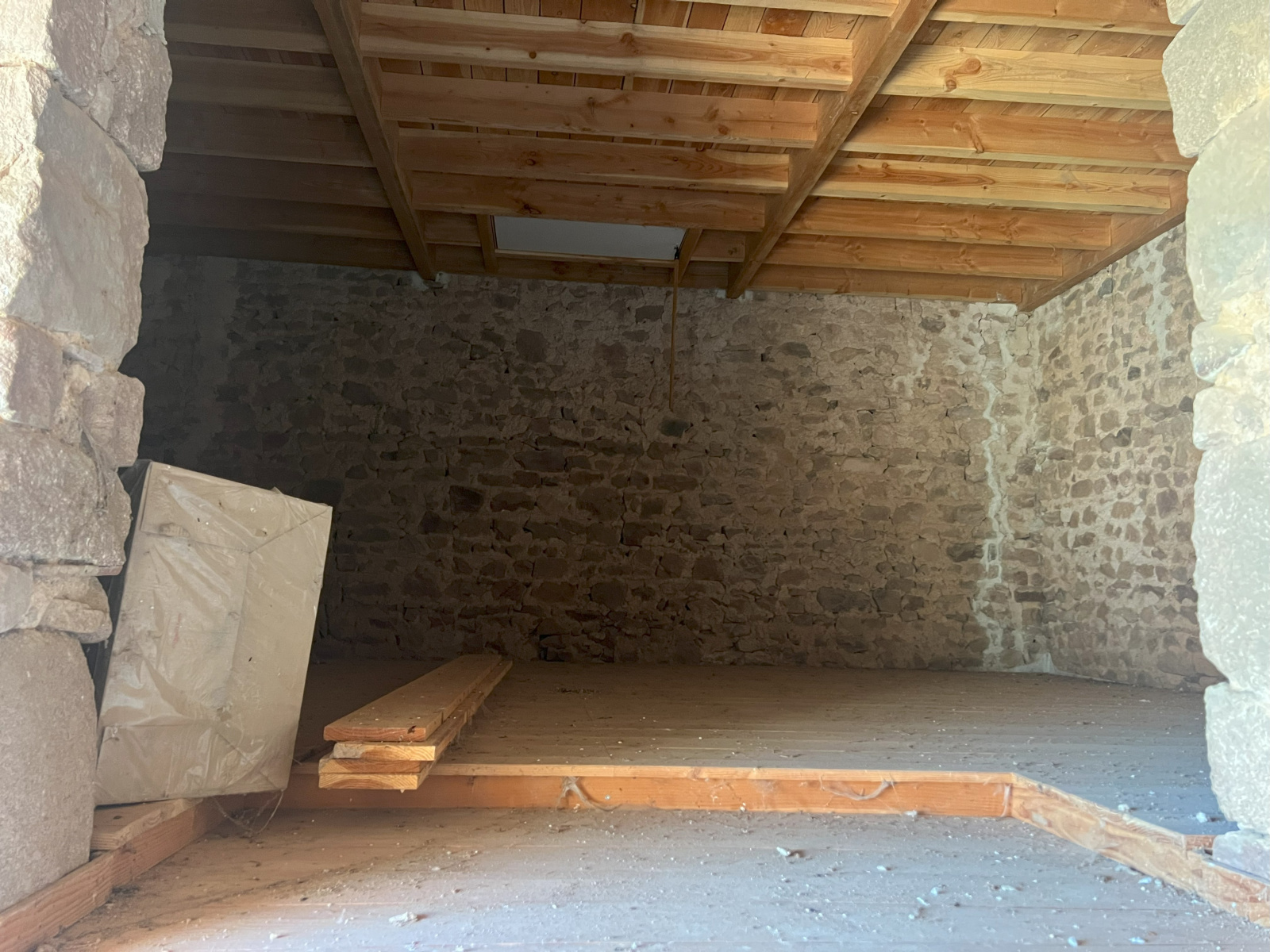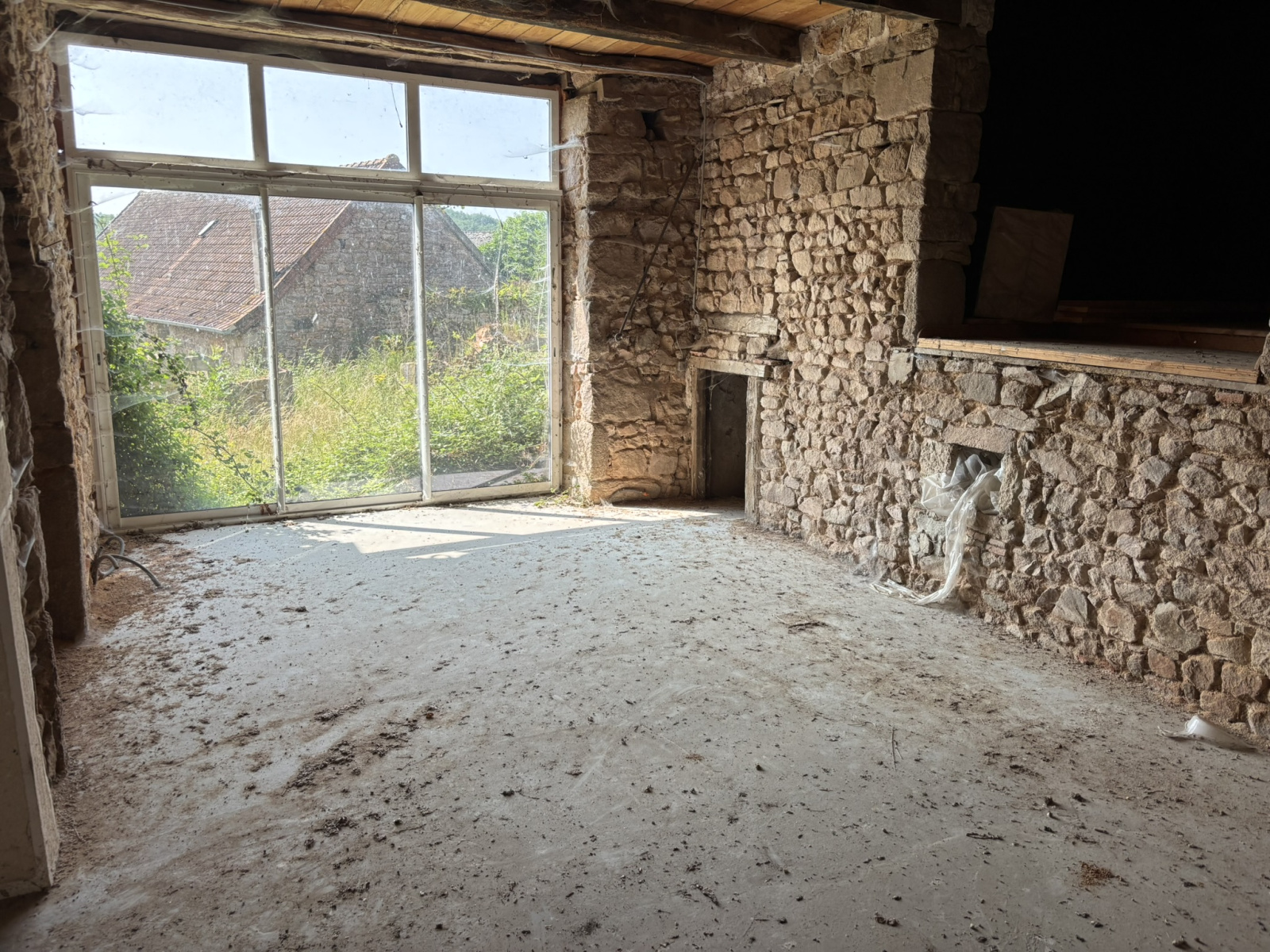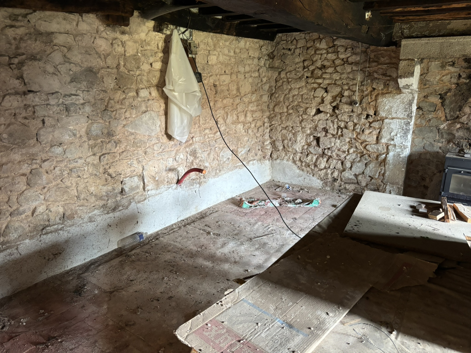 Maison en pierres en début de rénovation située dans un hameau. Le rez-de-chaussée, d'environ 100 m² comprend une pièce sur dalle béton, une ancienne cuisine sur tomettes avec plafonds à la française et cheminée, une écurie, un four à pain. À l'étage, deux pièces sur tomettes et une grande pièce sur plancher accessible par une échelle. Au 2ème étage grenier aménageable. Bon état du gros oeuvre, huisseries en double vitrage, intérieur à aménager. Cour avec un puits. L'ensemble sur un terrain de 340 m².