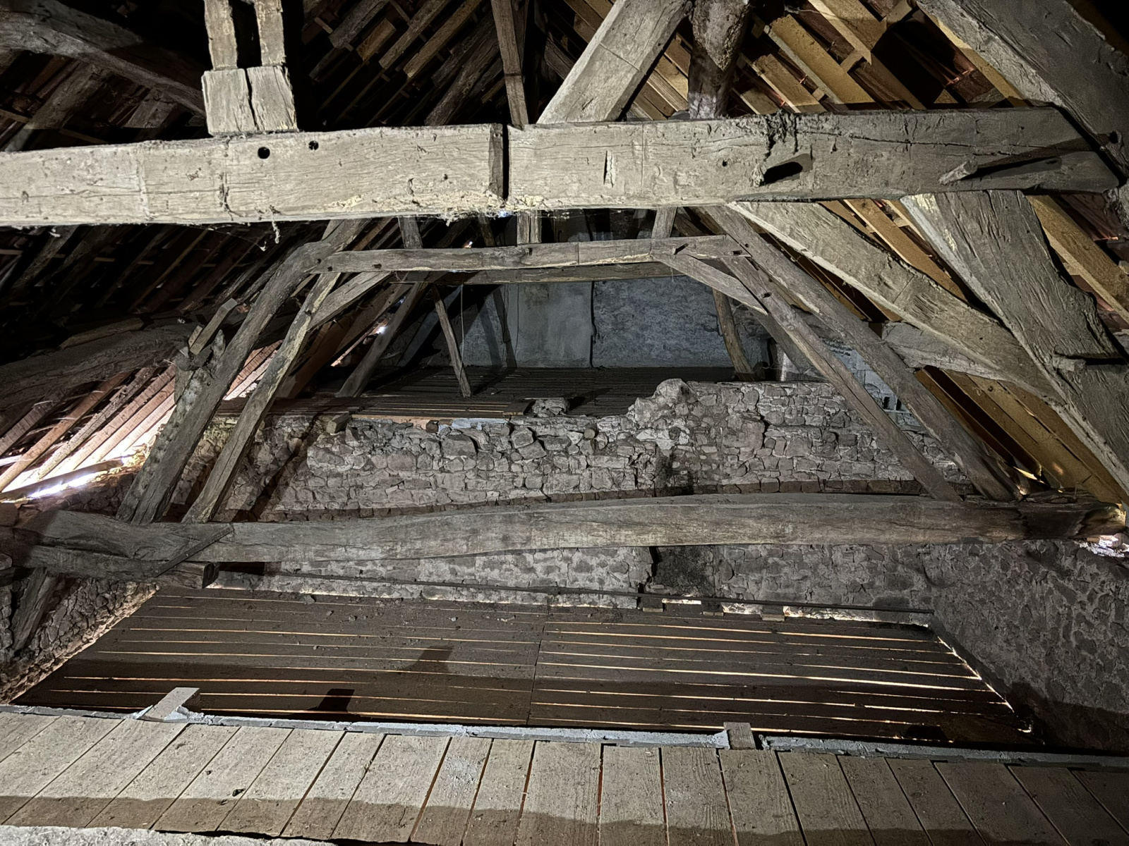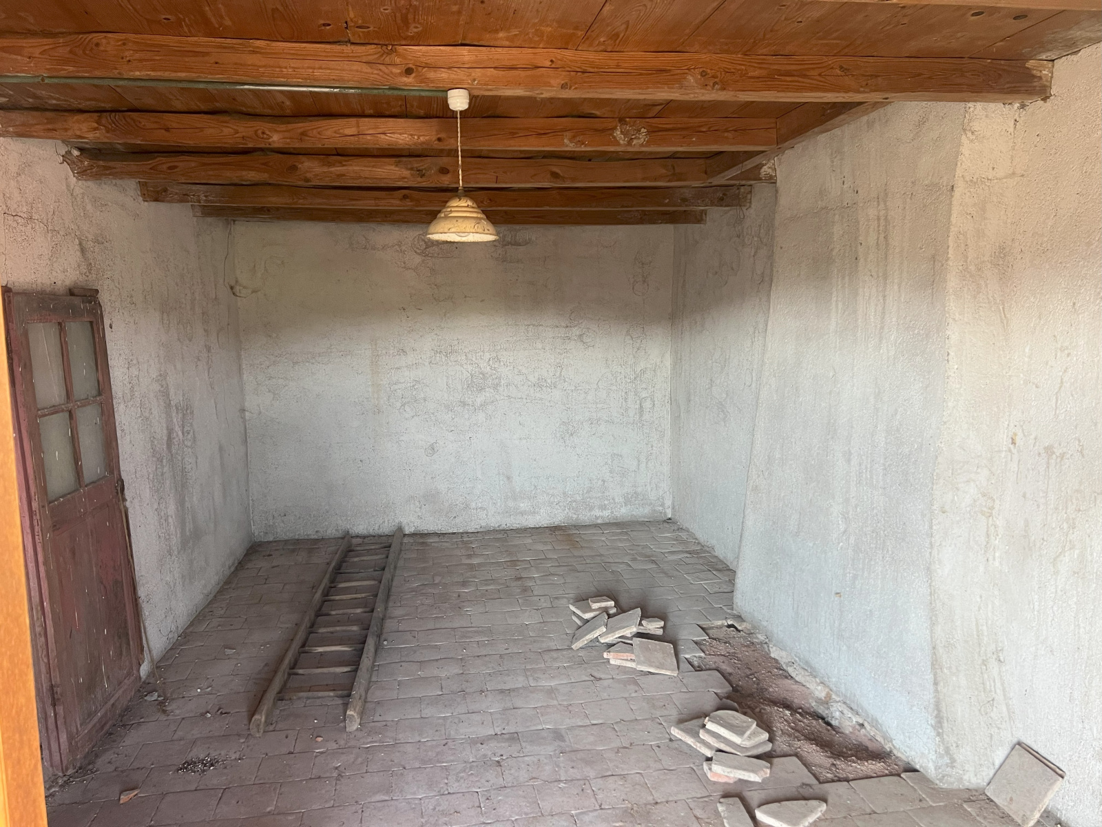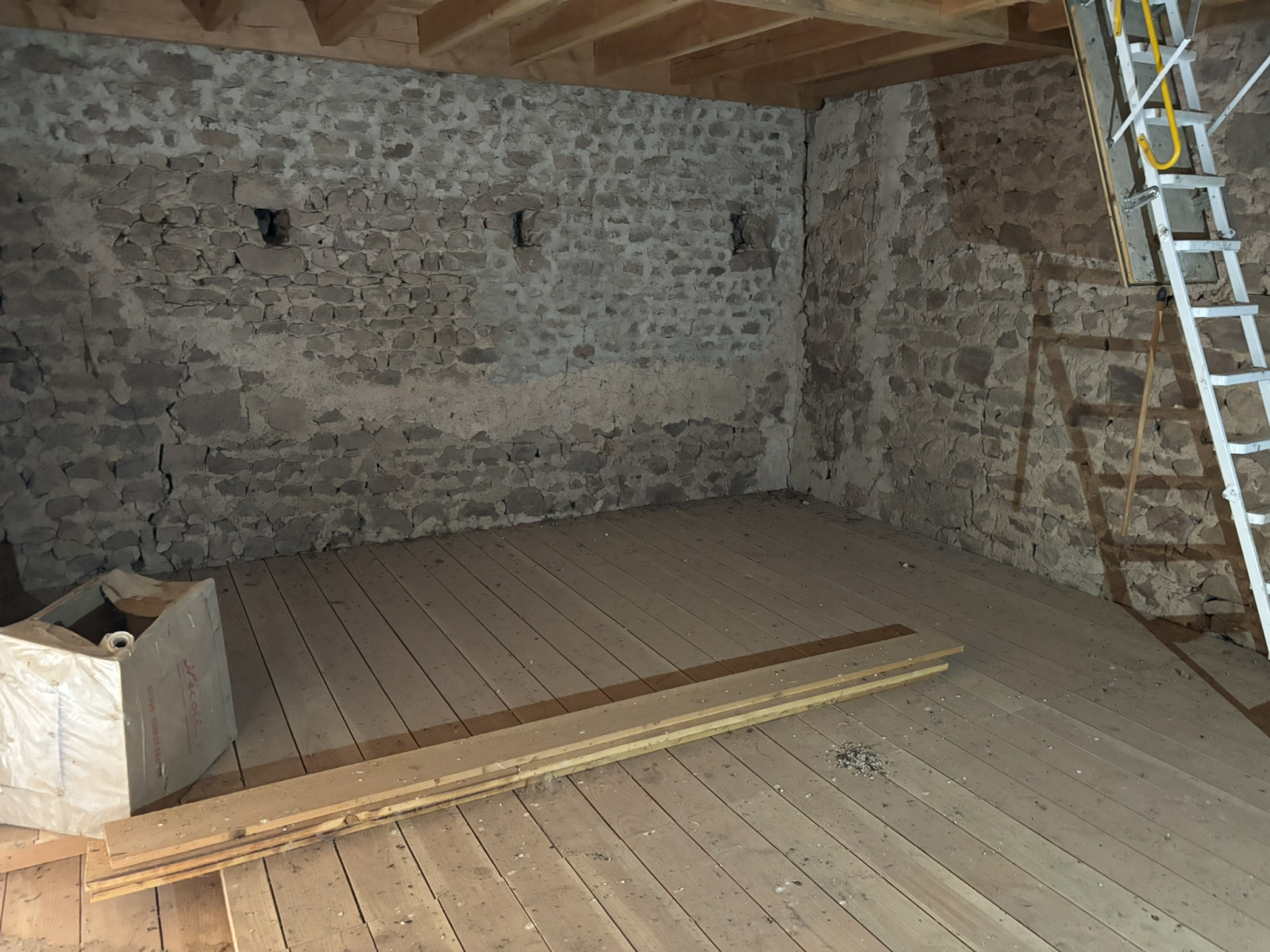 Maison en pierres en début de rénovation située dans un hameau. Le rez-de-chaussée, d'environ 100 m² comprend une pièce sur dalle béton, une ancienne cuisine sur tomettes avec plafonds à la française et cheminée, une écurie, un four à pain. À l'étage, deux pièces sur tomettes et une grande pièce sur plancher accessible par une échelle. Au 2ème étage grenier aménageable. Bon état du gros oeuvre, huisseries en double vitrage, intérieur à aménager. Cour avec un puits. L'ensemble sur un terrain de 340 m².