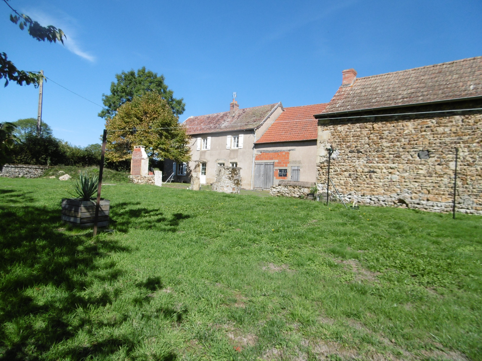 Les dépendances comprennent une ancienne étable transformée en atelier , un bel hangar , et autre bâtiments pour garage , rangement et un local . Cour , jardin , puits , assainissement récent .