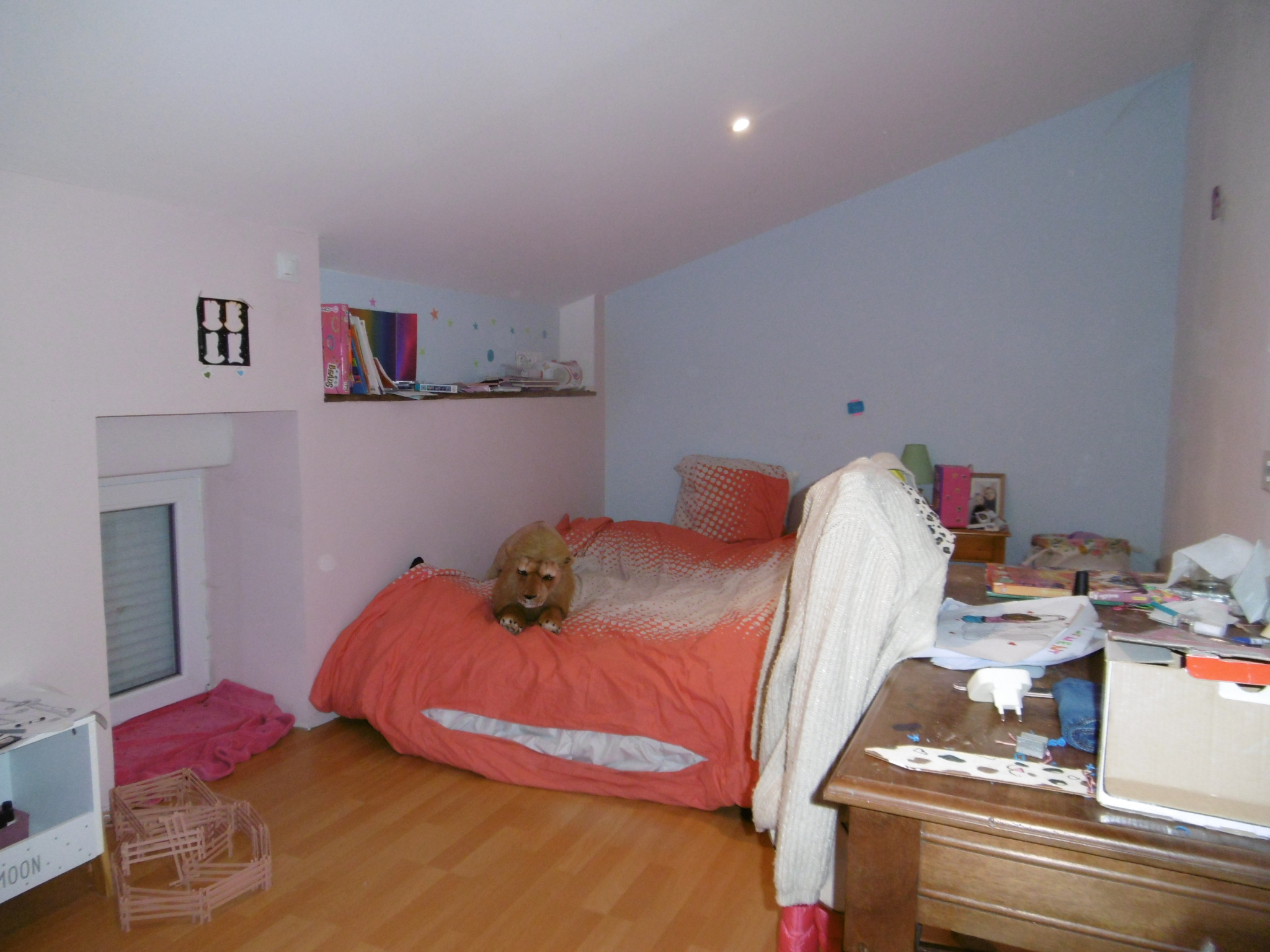 A l'étage : Palier avec couloir de distribution , quatre Chambres dont deux Chambres enfants mansardées , la Chambre parentale avec dressing . Salle de bains , Toilettes . et un petit coin salon / lecture . Escalier pour grenier aménageable .