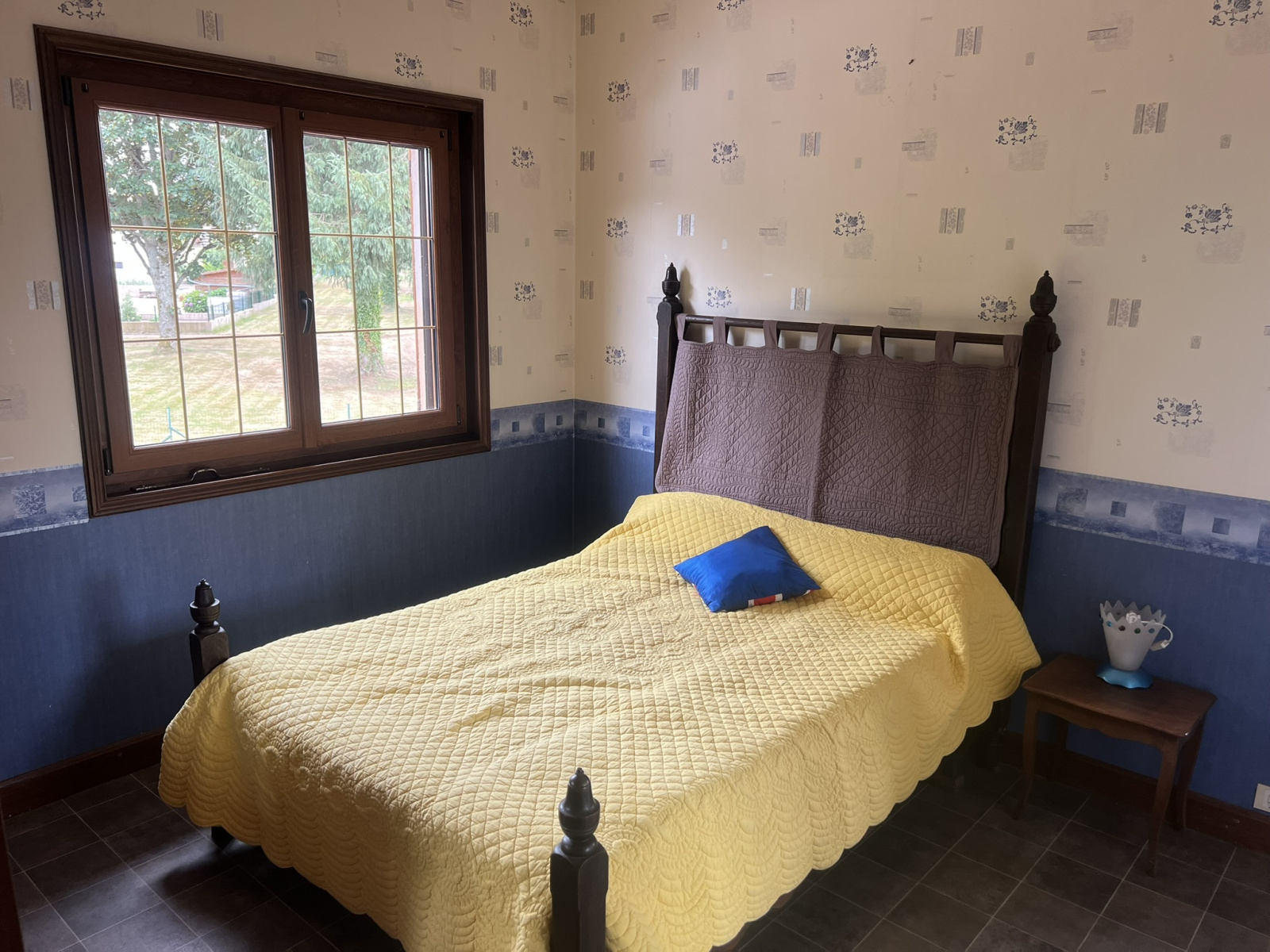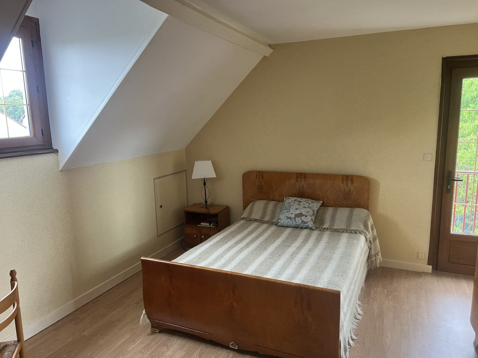 Rez-de-chaussée : hall d’entrée spacieux, cuisine équipée, vaste séjour/salon avec cheminée et plafond à la française, 2 chambres, salle d’eau, WC.