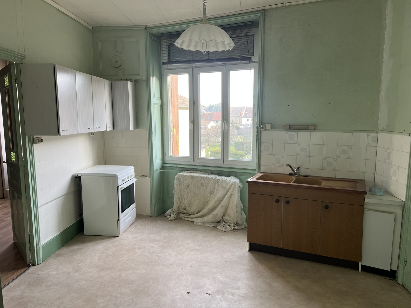 La Clayette, proche du centre-ville, ancienne maison à rénover, élevée sur un atelier/garage de 155 m². À l’étage, un appartement d’environ 87 m² comprenant une cuisine, un séjour ouvrant sur une grande terrasse couverte, trois chambres, une salle de bains et un WC. Au-dessus, grenier entièrement aménageable, offrant un beau potentiel supplémentaire.Chauffage central fioul et bois. Double vitrage. Idéal pour un artisan, un espace de stockage ou le stationnement de plusieurs véhicules. Jardin clos et arboré non attenant. Proche de toutes les commodités : commerces, écoles et gare